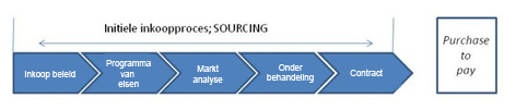 Het inkoopproces is onder te verdelen in enerzijds het tactische en strategische inkoopproces: ‘Sourcing’ en anderzijds het operationele inkoop- c.q. afroepproces: ‘Purchase to pay’